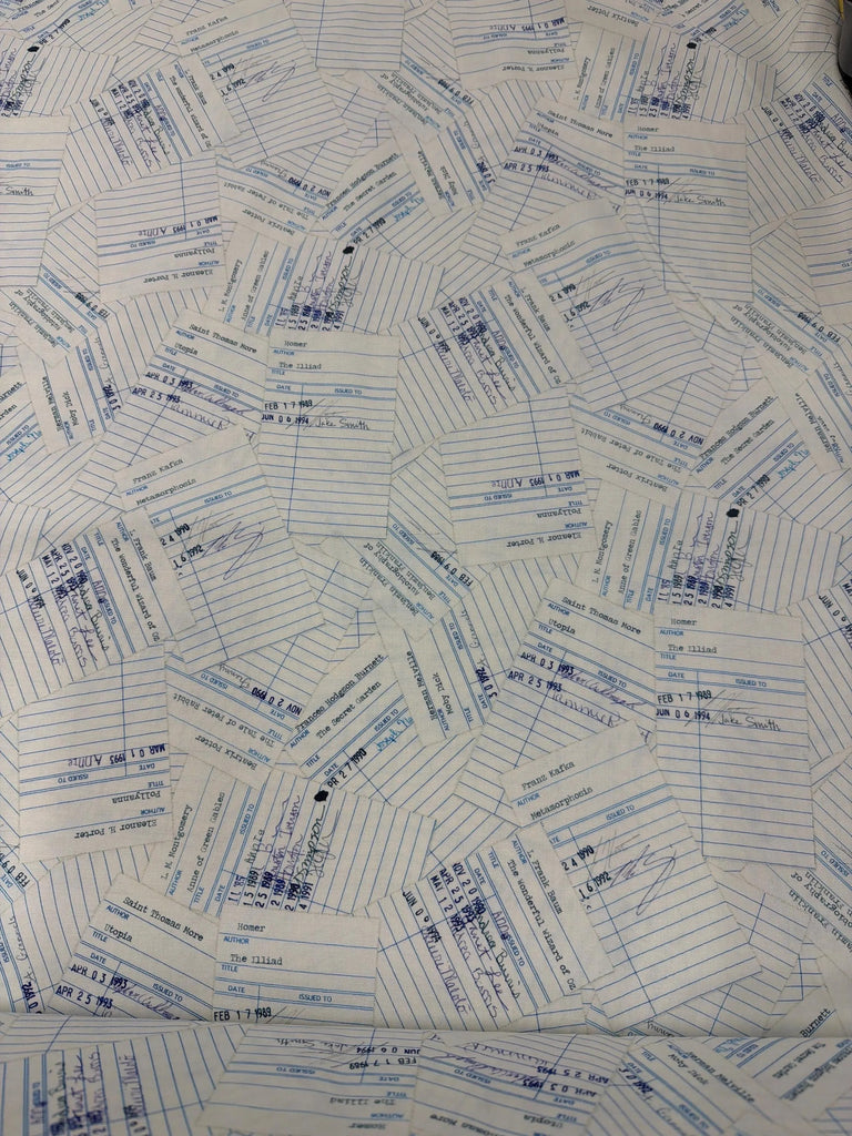 This library card-inspired quilting cotton is perfect for book lovers, teacher, and anyone who loves a cozy reading aesthetic. Featuring vintage-style book checkout cards, dates, and literary details, this fabric adds a nostalgic touch to quilts and handmade gifts.
