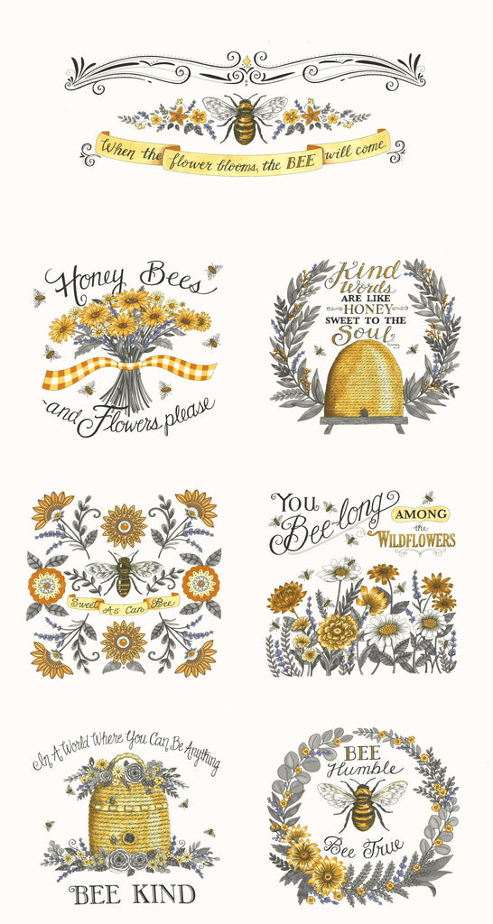 This beautiful 24-inch quilting panel from Deb Strain’s Honey and Lavender collection features uplifting sayings, charming bees, and soft, elegant design elements—perfect for quilts, wall hangings, and other creative projects.