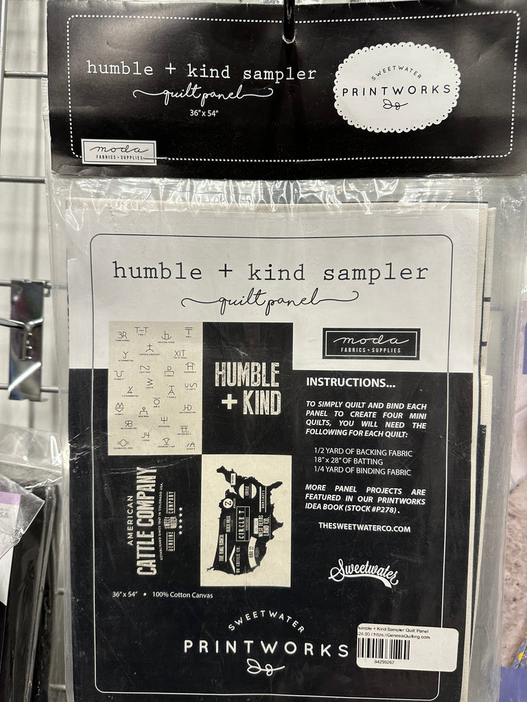 Bring a touch of rustic charm to your next quilting or sewing project with this beautifully designed "Humble + Kind" sampler panel by Sweetwater Printworks. Featuring a heartfelt message and classic cattle-themed artwork, this high-quality cotton panel measures 36" x 54" - perfect for quilts, wall hanging, or home decor accents.